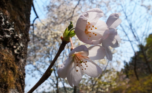 長い冬眠を経て鑑賞時期到来の窓際桜。